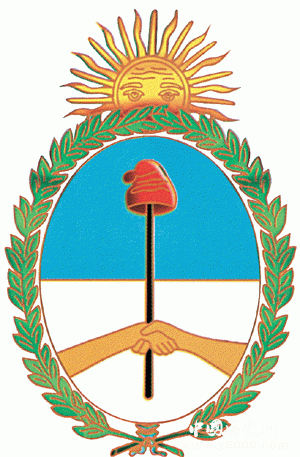 為豎橢圓形,上半部為天藍(lán)色,代表正義;下半部為白色,代表純潔和信念。國(guó)徽底部?jī)芍挥沂志o握,象征著拉普拉塔聯(lián)合省人民的團(tuán)結(jié)。圖案中央,兩手緊握的一支短矛挑起一頂象征自由的紅色弗里吉亞帽,意味著為自由而戰(zhàn)。圖案頂部噴薄欲出的太陽向世人宣告,一個(gè)新的民族國(guó)家伴隨著真理、尊嚴(yán)和繁榮誕生了。國(guó)徽四周有綠色桂樹葉環(huán)繞,象征光榮和勝利。天藍(lán)色與銀白色彩帶結(jié)象征著阿根廷民族。由于各地使用國(guó)徽?qǐng)D案不統(tǒng)一,甚至做出任意改動(dòng),1944年政府頒布10.302號(hào)法令,確定國(guó)徽的正式圖案。