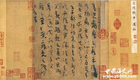 《平復帖》,是西晉陸機的書法作品,牙色麻紙墨跡,縱23.7厘米,橫20.6厘米,共9行84字,因全文有“恐難平復”的文字而得名。陸機(261年-303年),字士衡,吳郡吳縣(今江蘇蘇州)人,是孫吳丞相陸遜之孫、大司馬陸抗之子,與顧榮、陸云并稱“洛陽三俊”,被譽為“太康之英”,是西晉著名的文學家、書法家?!镀綇吞穼嶋H上是陸機向朋友問候疾病的一通信札,用禿筆寫于麻紙之上,墨色微綠,筆意婉轉,筆隨勢轉,平淡簡約,風格平淡質樸,散發(fā)出古樸、淳厚、深沉、凝重的歷史氣息,是傳世最早的草書真跡,有“法帖之祖”的美譽。《平復帖》在中國書法史上占有重要地位,對研究中國古代文字和書法的變遷有著重要的參考價值。
