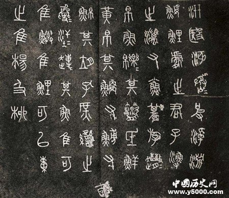 唐代在天興縣(今陜西鳳翔)出土十塊鼓形石,每塊石上均刻有四言詩(shī)一首,由于詩(shī)歌內(nèi)容多記錄和歌頌漁獵之事,又由于石形如柱礎(chǔ),故又稱“獵碣”。石鼓文在文學(xué)、歷史學(xué)、書法諸方面,均有很高的價(jià)值,唐代詩(shī)人韓愈、韋應(yīng)物等,曾先后作《石鼓歌》稱頌。