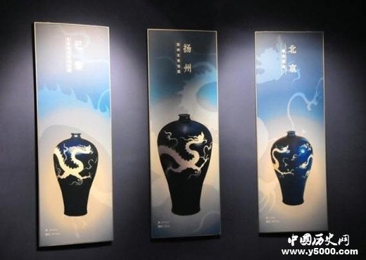 除了藝術(shù)高超,這類瓶子也非常稀少。元代的霽藍(lán)釉瓷器,目前全世界只存有12件,這12件里面,白龍紋飾的梅瓶只有3件。除了揚(yáng)州博物館的這一件,還有一個(gè)在巴黎的集美博物館,另一個(gè)在北京頤和園。但另外兩件都有明顯的瑕疵,從圖上來(lái)看,藏于巴黎的那一件,白龍頭部燒制的時(shí)候有黑點(diǎn),不夠完美,北京的那一件,白龍倒是可以,但是瓶身有一道明顯的裂痕。唯獨(dú)揚(yáng)州博物館這件,瓶身最大,各個(gè)細(xì)節(jié)都沒(méi)有瑕疵。