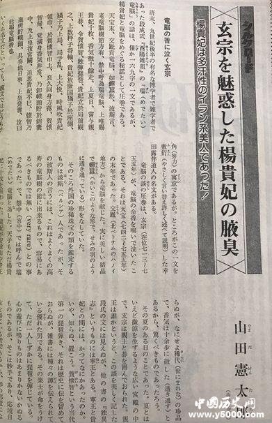 在日本新人物往來(lái)社編制的《別冊(cè)歷史讀本》雜志《絲路之夢(mèng)與冒險(xiǎn)記錄》???,看到了署名山田憲太郎的一篇文章,如果直譯其題目,應(yīng)該是《魅惑玄宗之楊貴妃的腋臭》。