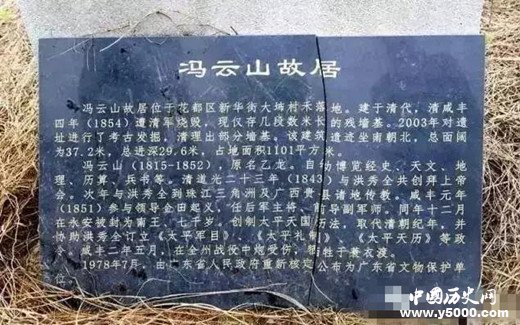 馮云山1815——1852,原名乙龍。自幼博覽經(jīng)史、天文、地理、歷算、兵書等。清道光二十三年(1843)與洪秀全共創(chuàng)拜上帝會。次年與洪秀全參加與領導金田起義,任后軍主將、前軍副軍師。同年十二月在永安被封為南王、七千歲。創(chuàng)制太平天國歷法、取代清朝紀年,并協(xié)助洪秀全訂立《太平軍目》、《太平禮制》、《太平天歷》等政令。咸豐二年五月,在全州戰(zhàn)役中炮受傷,犧牲于蓑衣渡。”