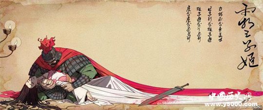 虞姬的聲音慢慢落下,就在這一瞬間虞姬輕輕一躍,抽出項(xiàng)羽腰間長劍,輕輕一舞,香消玉殞。劍尖,慢慢滴下的是來自虞姬脖頸的血液,那鮮紅,慢慢的侵染了項(xiàng)羽的心。