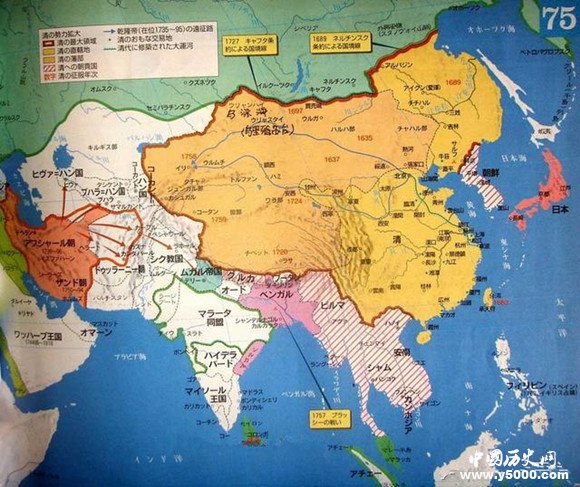 清朝版圖,日本人大致是畫準(zhǔn)確的。但是,他們把庫頁島劃歸到日本版圖了。理由是,清朝對此沒有實(shí)際控制。