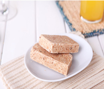 首先準(zhǔn)備壓縮餅干配料:膨化粉5公斤白糖1公斤、花生油1公斤、食鹽50克、芝麻250克、水530克。配料前先測試膨化粉的含水量,以便掌握水量,然后進(jìn)行調(diào)粉。先加油,調(diào)勻后,再加水,攪拌均勻。調(diào)粉時溫度不能太低,否則易結(jié)塊。粉溫最好在145~145℃為宜。粉調(diào)好后進(jìn)行壓模,模的規(guī)格為4×8厘米,高7.5厘米,壓力90公斤/厘米2,每塊重62.5克,每兩塊裝一包,標(biāo)準(zhǔn)重125克。成品含水量不超過6%。而其中要特別注意的是:膨化粉顆粒不能太細(xì),如果太細(xì),溫度太低,調(diào)粉時易于結(jié)塊。各種糧食膨化粉的體積不同,壓制時壓力也應(yīng)不同。其壓力大小應(yīng)該是使產(chǎn)品的體積和重量不變。用油的品種也應(yīng)有所選擇,以便更好地貯存。