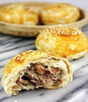 鮮肉月餅是蘇式月餅的一種,是江浙滬一帶的漢族特色小吃。鮮肉月餅的餡主要是豬肉。鮮肉月餅皮脆而粉,又潛伏著幾分韌。一口咬下去,里面是一大塊肉,豐腴的肉汁慢慢滲透其間,可謂一絕。
