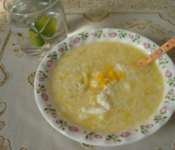 2、鍋中燒開水,將南瓜泥倒入攪拌后調(diào)入水淀粉,醪糟,白糖,枸杞鍋開后即可出鍋,吃之前淋入少許蜂蜜,如果不喜歡太甜的,此處可省略,如果一次喝不完可以放到冰箱中,冷飲的味道更好。