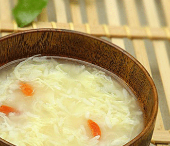 將雞蛋去殼打散,倒入沸水將雞蛋燙成蛋花,加入約一勺“伏汁酒”和適量白糖,即可。