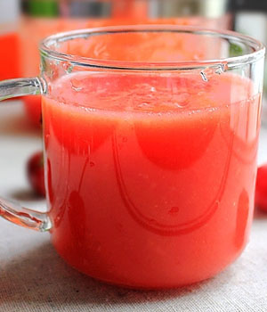 4、櫻桃汁:櫻桃80克,冷開水1杯。櫻桃洗凈后去核,放入果汁機中加冷開水攪成櫻桃汁,倒出供飲(可加適量白糖調(diào)味)。此汁具有潤澤皮膚的作用,可消除皮膚暗瘡疤痕。