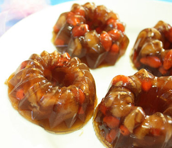 準(zhǔn)備材料:吉利丁片、枸杞、桂圓、紅糖
