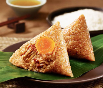 糯米和加工好的配料混合包入葦葉中,用水煮2小時(shí)即可食用。
