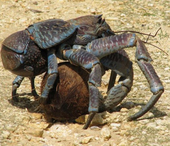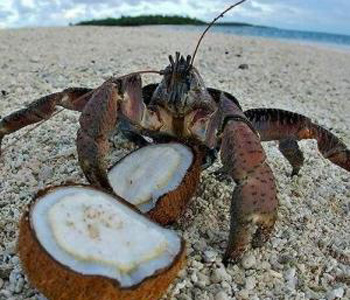 不過別看它吃椰子肉就以為它是草食性動物,實際上椰子蟹是雜食性動物,無論是植物的果實葉子還是腐敗的動物尸體,只要是有機物它都喜歡吃。餓起來他們還會同性相殺,失敗的就會成為其他椰子蟹的口中物,所以人們又稱椰子蟹為“強盜蟹”。