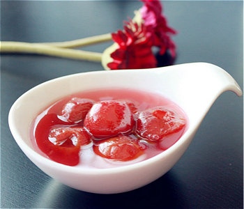 4、用果核和浸泡過山楂的水熬煮山楂,可以使湯汁顏色更好看,味道更濃郁。