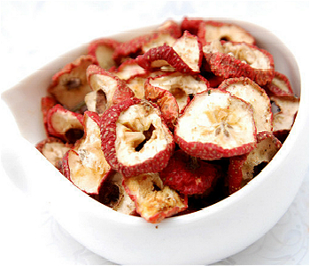 山楂干中含有枸櫞酸、蘋(píng)果酸、抗壞血酸、醣和蛋白質(zhì)、碳水化合物等營(yíng)養(yǎng)物質(zhì),有降血壓,促進(jìn)胃腸消化的作用。