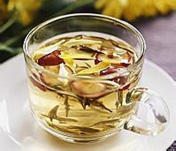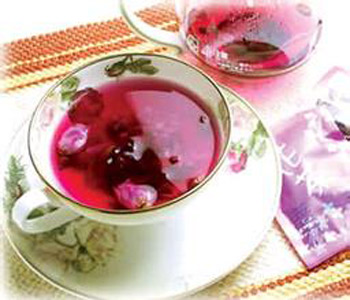 做法:先將山楂、枸杞子煎汁,然后沖入裝有茉莉花、玫瑰花的容器中,再稍煮后即可飲用。