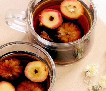 材料:山楂干10g、烏梅5顆、玫瑰果3顆、冰糖適量。