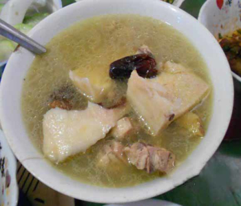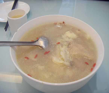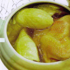 2.把雞、姜片、核桃仁、棗、榴蓮皮與榴蓮肉同放入鍋內(nèi)滾開水中,加姜片,用猛火滾起后,大火燒開,小火熬煮2個(gè)小時(shí)。枸杞子最后十分鐘加。湯好后放鹽調(diào)味即可飲用。榴蓮飄香的季節(jié),買榴蓮的時(shí)候不妨把榴蓮殼也帶回家,熬上一鍋湯,補(bǔ)氣健脾,還很養(yǎng)顏的說。