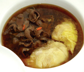 2、把雞、姜片、核桃仁、棗、榴蓮皮與榴蓮肉同放入鍋內(nèi)滾開水中,加姜片,用猛火滾起后,大火燒開,小火熬煮2個(gè)小時(shí)。枸杞子最后十分鐘加。湯好后放鹽調(diào)味即可飲用。榴蓮飄香的季節(jié),