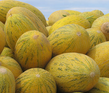 哈密瓜果肉有利便、止渴、除煩熱、防暑氣,且還有清涼消暑、除煩熱、生津止渴的作用,所以哈密瓜是夏季解暑的佳品。因為哈密瓜對人體造血機能有顯著的促進(jìn)作用,所以用來作為貧血的食療之品也是極佳選擇。哈密瓜還可治發(fā)燒、中暑、口渴、尿路感染、口鼻生瘡等癥狀。如果常感到身心疲倦、心神焦躁不安或是口臭,食用哈密瓜都能有所改善?,F(xiàn)代醫(yī)學(xué)研究發(fā)現(xiàn),哈密瓜等甜瓜類的蒂含苦毒素,具有催吐的作用,能刺激胃壁的黏膜引起嘔吐,適量的內(nèi)服可急救食物中毒,而不會被胃腸吸收,是一種很好的催吐劑。下面一起來見識一下哈密瓜。