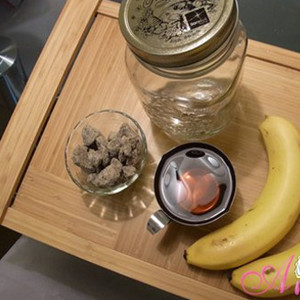 步驟2:耐熱密封瓶?jī)?nèi)放入黑糖,再放切好的香蕉,倒入200c.c.水果醋,稍微搖晃一下;