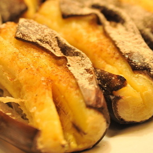 4、烤好的香蕉頭尾有些稀軟,聞起來有點酸,咽到肚子里暖暖的,的確是一種享受。這種烤過的香蕉用勺子一壓就變成泥狀,和土豆泥和勻,加些糖和奶或者干脆加煉乳,就是一道別出心裁的甜點。