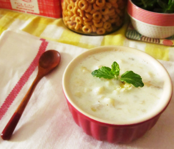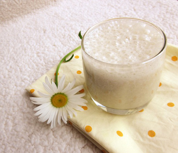 材料:1熟透的香蕉、1湯匙糖、2/3杯冷牛奶、幾粒鹽