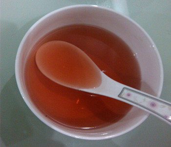 5、將枇杷葉子水倒出,此時(shí)還是茶色的,過一會(huì)兒就變成酒紅色,帶著淡淡的枇杷葉子的清香,煮出的水當(dāng)成日常茶飲,每天可以少量服用,3-4次都可以,大人也可以用,止咳化痰效果很好。