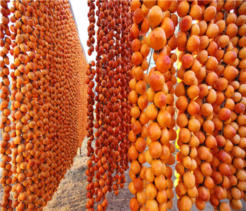 2、做成柿餅吃。在鄉(xiāng)下里的人都喜歡把成熟的柿子去掉皮,然后用繩子串起來,掛在門外涼干,做成柿餅了。但是需要注意的是做柿餅的過程中需要隔幾天就要把柿餅?zāi)笠荒?,讓柿餅?nèi)的水分混合一下,這樣柿餅就能又軟又甜。到了霜降的節(jié)氣,柿餅自己外層就會(huì)出現(xiàn)一層白白的粉,叫做“上霜”。柿餅上的霜是柿餅的精華之處,它是一種從柿餅里面滲出來的糖分,非??煽冢蠹仪f不要以為它是臟了而把它刮掉。