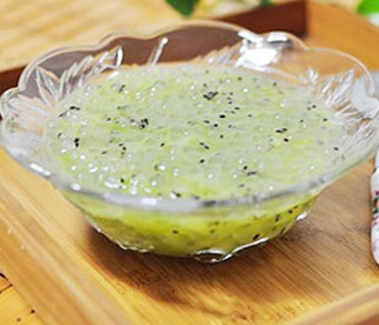 1、鮮獼猴桃沖洗干凈,去皮取瓤;