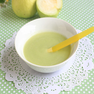 2、番石榴汁。將番石榴洗干凈,切成小塊;用攪拌機(jī)將番石榴攪打成汁,可過(guò)濾掉果泥,取果汁。