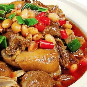 2.炒鍋置旺火上,放入熟油50g,燒至八成熱時人狗肉爆出香味,噴紹酒,加入醬油、精鹽和原湯,燒開后倒在砂鍋內(nèi),用小火煨至酥爛,收干汁,盛人盤內(nèi)。