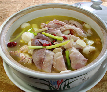 用堿法:將豬肚用少許食用堿反復(fù)搓洗,再放入沸水鍋內(nèi)氽燙。