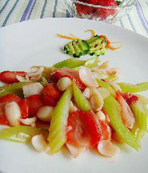 原料:四川臘肉、西芹、百合、草莓適量