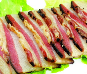 3、質(zhì)量好的臘肉,皮色金黃有光澤,瘦肉紅潤(rùn),肥肉淡黃,有臘制品的特殊香味。