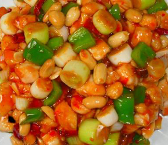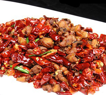 3、坐鍋點火,留底油燒熱,將蔥、姜煸炒出香味后,放入辣椒末、花椒粉、鹽、白糖、雞塊翻炒均勻即可出鍋。