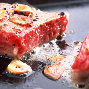 生牛排:牛排內(nèi)部為血紅色而且溫度不高。
