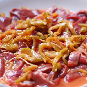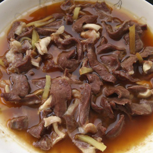 材料:豬心、醬油、食油、料酒、淀粉、食鹽、糖、姜