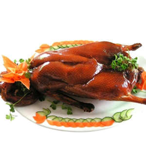 5、烤鴨外皮焦黃香脆,內(nèi)質(zhì)肉嫩滑潤(rùn);將鴨肉切成薄薄的片兒,每一片有皮有肉有油,荷葉餅上抹上一層甜面醬,加上大蔥段,把鴨肉片卷進(jìn)去,吃起來(lái)肥而不膩,鮮美可口。然后,用“鴨架”燉湯,清爽利口。