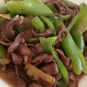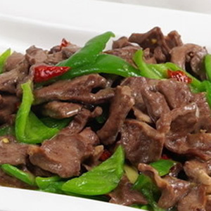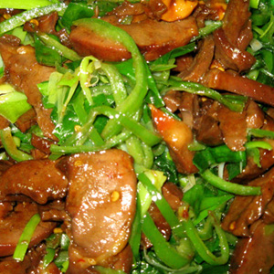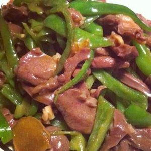 材料:青椒、豬心、食鹽、醬油、味精、糖、料酒、淀粉、姜片、蒜末
