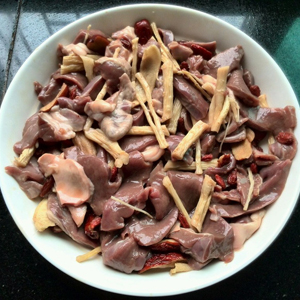 材料:豬心、醬油、食油、料酒、淀粉、食鹽、糖、姜