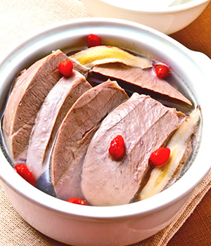 豬心枸杞湯另一大主要材料枸杞也是一種重要的進(jìn)補(bǔ)材料,具有養(yǎng)肝、滋腎、潤(rùn)肺的功效,它所含有的枸杞多糖具有促進(jìn)免疫、抗衰老、抗腫瘤、清除自由基、抗疲勞、抗輻射、保肝、生殖功能保護(hù)和改善等作用,而枸杞色素也是枸杞中的重要營(yíng)養(yǎng),它的主要活性成分是胡蘿卜素,具有抗氧化和作為維生素A的合成前體等重要的生理功能。豬心枸杞湯擁有這兩大滋補(bǔ)食材,是一道營(yíng)養(yǎng)價(jià)值很高的湯品。