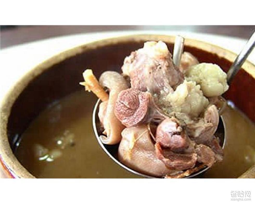 制作方法:羊頭、羊蹄用火燒盡殘毛,羊腸、羊肚翻去殘渣。洗凈后連同羊心羊肝一起下鍋煮熟,拆去骨頭,分別切成條或段。羊肺用洗去面筋的稀面糊灌好后,也下鍋煮熟,切成長條。然后將切好的各種熟料放在羊肉湯里略煮片刻,撒上蒜苗、香菜,滴上紅油盛碗即成。