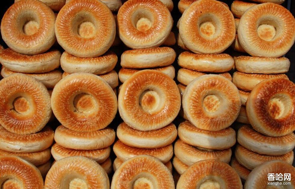 一般見到的只是馕的最基本的一兩個(gè)品種,其實(shí)馕的品種很多,《突厥語大詞典》中提到了11種馕,1984年出版的《維吾爾族食譜》則詳盡地介紹了20種馕的制作方法。雖然馕的品種很多,但古今制馕的主要原料和基本方法是不變的。它的主要原料是面粉(小麥粉或玉米面粉)、芝麻、洋蔥、雞蛋、清油、酥油、牛奶、糖、鹽。用發(fā)酵面或死面制作。 《突厥語大詞典》中的“巧萊克馕”現(xiàn)在稱“托喀西馕”,其大小如一般茶杯口,厚約1厘米,是加工最精細(xì)的小圓馕?!案鏍柕も巍弊詈?,直徑10厘米多,中間有小窩,漢族人稱之為“窩窩馕”?!鞍蒜巍敝睆娇蛇_(dá)50厘米,成為馕中之王,這種馕每個(gè)要用1—2公斤面粉,中間薄而脆,邊沿厚而軟,中央戳以花紋。 “埃特買克”指熟得很好的油馕。這些馕一般都是用發(fā)酵面烤制的。還有一種油馕,是用死面揉入清油或羊油,搟薄后烤制而成,《突厥語大詞典》稱之為“琵斯凱其”,現(xiàn)代維吾爾人稱之為“喀克齊馕”和“比特爾馕”。另有一種加工更為精細(xì)的死面馕,該馕用一層面一層油擰在一起,搟薄后烤制,現(xiàn)代維吾爾人稱之為“喀特瑪馕”,《突厥語大詞典》稱之為“亞哈馕”。這種馕多用于節(jié)日喜慶時(shí)招待賓客。把肥羊肉切碎,加上油、鹽、洋蔥和一些佐料,然后包在發(fā)酵的面里,制成肉馕,現(xiàn)代維吾爾人稱“闊西馕”?!锻回收Z大詞典》里還介紹過現(xiàn)在一般市面不曾見到的“甜肉馕”,它是“把肉煮得爛熟后,摻酥油和糖,再煮得變稠,然后和面烤制食用。”在馕的表面抹一層冰糖水,烤熟后表面亮晶晶的,這種甜馕現(xiàn)代維吾爾人稱為“酉克曼馕”。