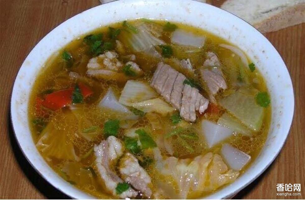 清燉羊肉,新疆菜肴,是各民族都喜愛的特色小吃。哈薩克族牧民煮肉除了鹽不放任何調(diào)料。涼水放肉,水剛漫過肉。鍋一開,大血沫一撇,將火撤小。真正的文火,真正的燉。羊肉肉質(zhì)細(xì)嫩,容易消化,高蛋白、低脂肪、含磷脂多,較豬肉和牛肉的脂肪含量都要少,膽固醇含量少。白蘿卜是老百姓餐桌上最常見的一道美食,含有豐富的維A、維C、淀粉酶、氧化酶、錳等元素。老少皆宜。