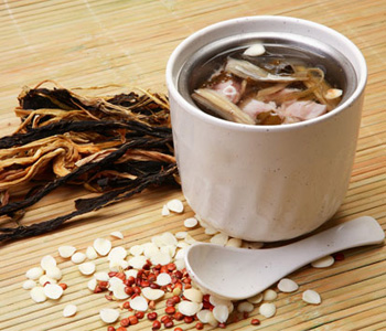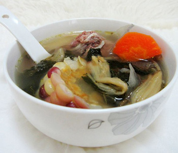 材料:白菜干 60克、豬骨 600克、蜜棗適量、薏米適量、姜適量、鹽適量。