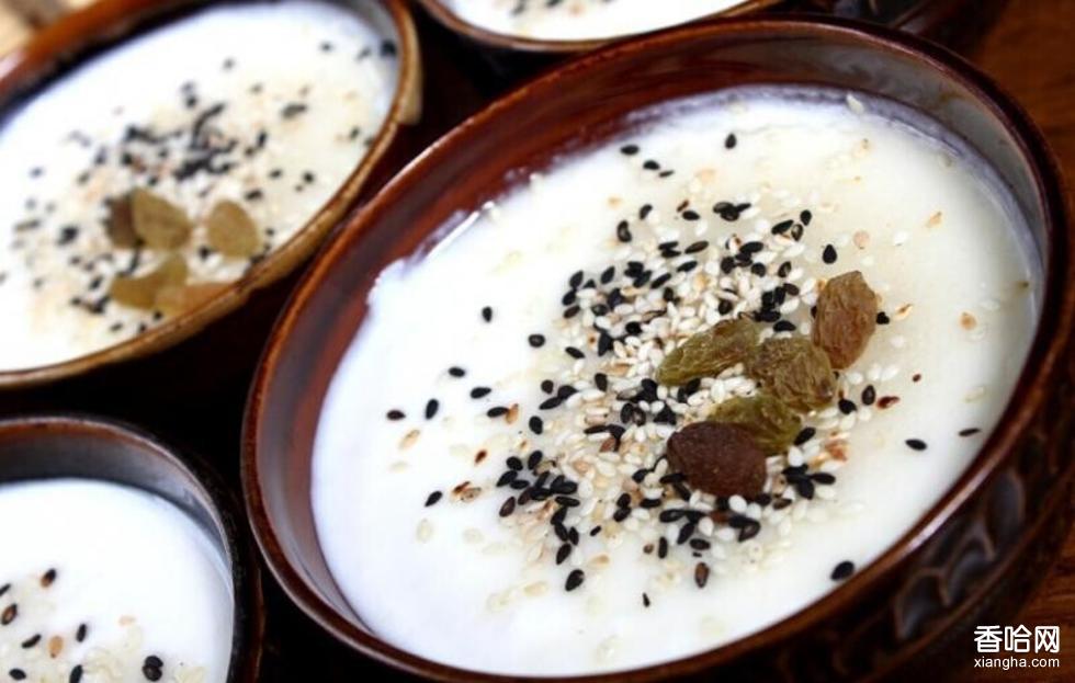 一種發(fā)酵的乳制品,即“酸奶”。我國(guó)新疆、西藏、內(nèi)蒙古、青海等少數(shù)民族地區(qū)稱之為酸奶子?!∧撩褚话悴粣酆弱r牛奶,而喜歡喝酸奶子。制法有二:一是將鮮牛奶倒入大鍋中燒開,再放在通風(fēng)處景涼,使其發(fā)酵,產(chǎn)生酸味;另是將鮮牛奶置于陽(yáng)光下或溫度高的地方,使其受熱發(fā)酵,產(chǎn)生酸味,便成酸奶子。
