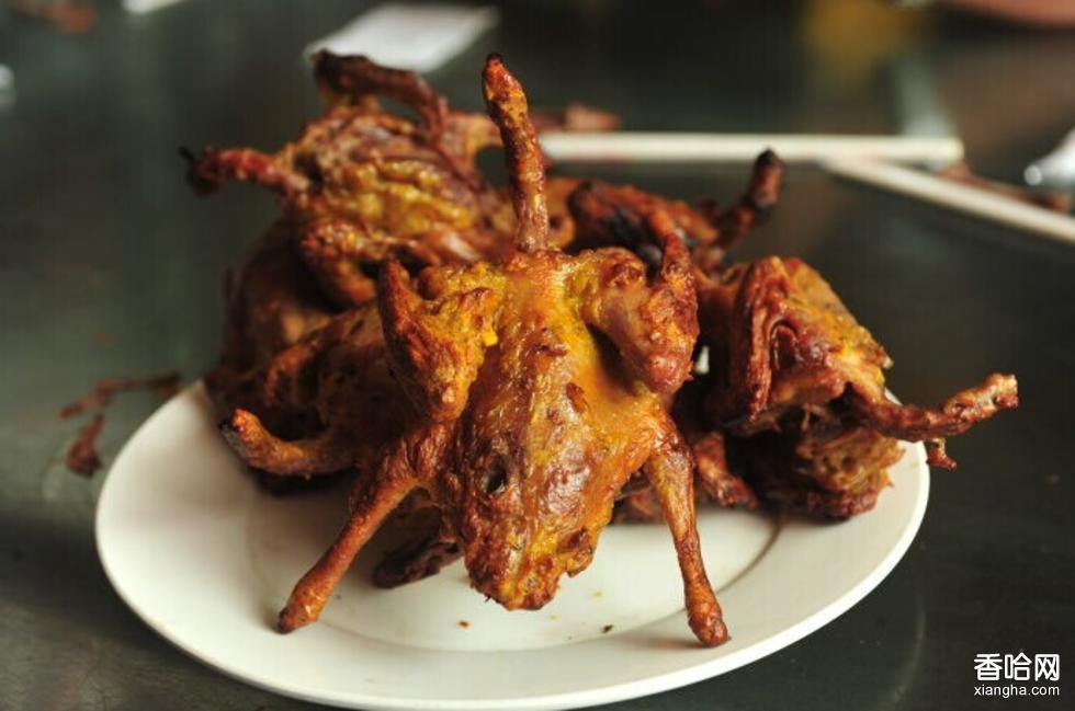 廚師通常都是把穿好的一串串乳鴿塊放入用雞蛋、淀粉配制好的調(diào)料里浸泡幾分鐘后,再上烤架。有整只烤的,也有分解為半只或四分之一進(jìn)行烤的。炙烤的炭火是事先準(zhǔn)備好的杏樹、桑樹木炭,在烤制過程中再加鹽、白胡椒、孜然等調(diào)味品,并不時(shí)翻動(dòng)烤架上的乳鴿串,幾分鐘后,鴿子就變成了金黃色,噗噗地滲出了油,令人垂涎難忘。