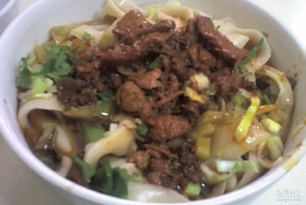 配"小蔥,蒜苗,辣子、豆腐丁等佐料,吃來(lái)口感獨(dú)特,制面條的特殊過(guò)程,選好上等精粉,配以石堿、食鹽,溶于溫水中,搖均自后和面,用力抒搓待面軟硬適中時(shí),特面打成小體,再搓成一尺左右的母指粗的條子,用油布蓋上軟化一十時(shí)后再用。