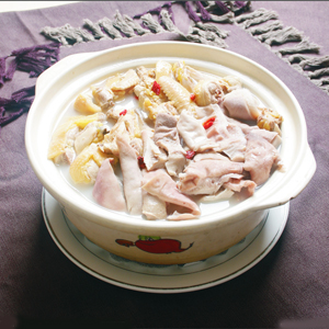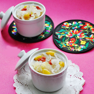 食材:鯽魚、黃豆、白果、銀耳、姜片、鹽。