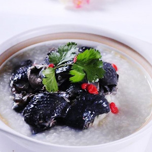 烏骨雞肉經(jīng)烹調(diào)后不僅肉質(zhì)細(xì)嫩鮮美,成為人們?nèi)粘2妥郎系囊坏烂牢?,而且湯汁中還合有大量的黑色膠體物質(zhì),對(duì)人體具有特殊的滋補(bǔ)作用。還含有豐富的維生素以及鐵、銅、鋅等多種微量元素,而且膽固醇含量較低,食用后能增加人體血紅素,調(diào)節(jié)人體生理機(jī)能,增強(qiáng)機(jī)體免疫力,特別適合老人、兒童、產(chǎn)婦及久病體弱者食用。 夏天喝粥能養(yǎng)生,所以用烏雞來(lái)熬粥,即滋補(bǔ)又養(yǎng)生。